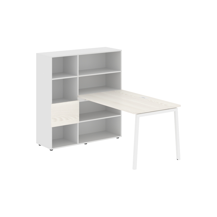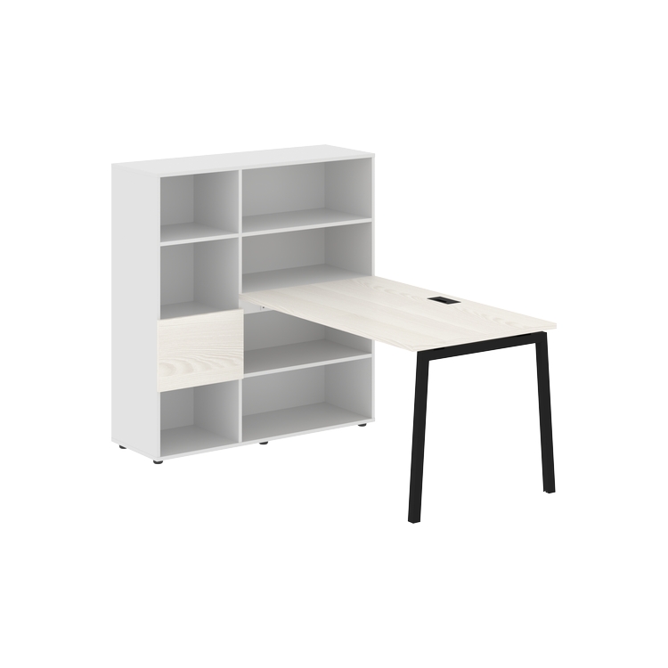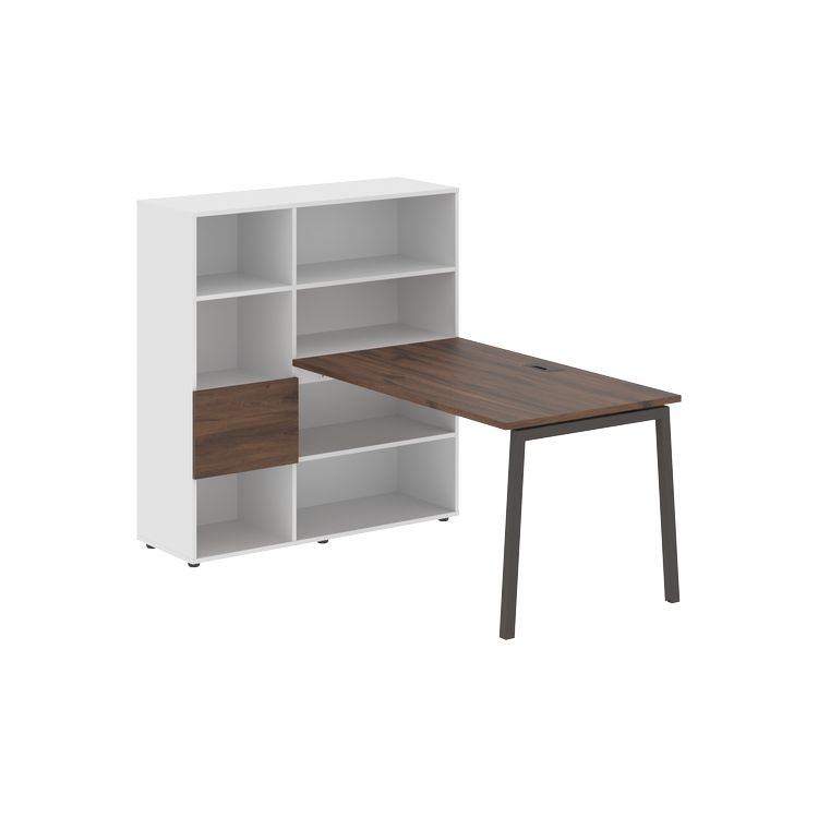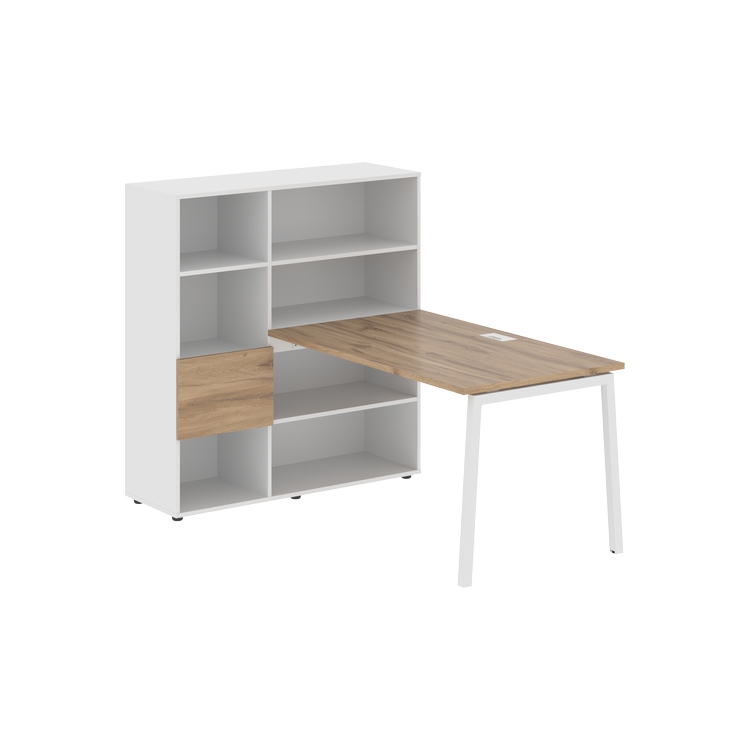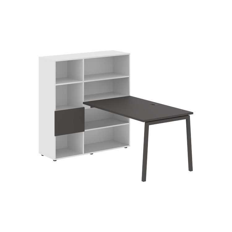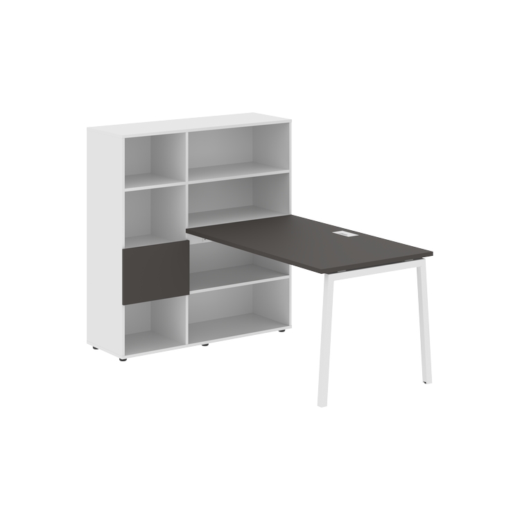 Столешница глубиной 800 мм, комплектуется регулируемой опорой L-образной формы из профиля трубы 40х40, комплектом телескопических траверс и двумя кронштейнами для крепления к стеллажу.
