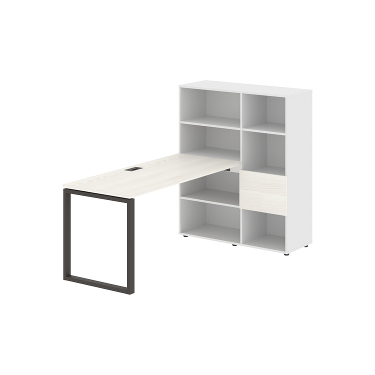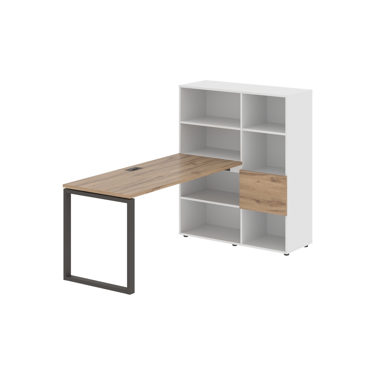 Каркасы стеллажей полностью из ЛДСП т.18 мм с кромками ПВХ т.2 и 0,45 мм, задняя стенка из ЛДСП. Комплектуется малой дверью в цвет столешницы и регулируемыми опорами h= 27 мм.