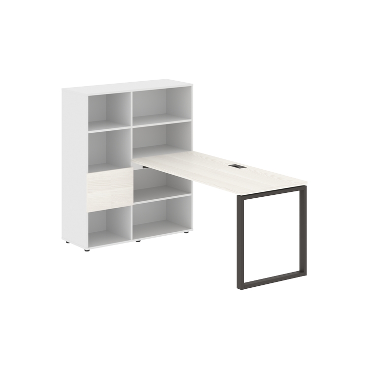 Каркасы стеллажей полностью из ЛДСП т.18 мм с кромками ПВХ т.2 и 0,45 мм, задняя стенка из ЛДСП. Комплектуется малой дверью в цвет столешницы и регулируемыми опорами h= 27 мм.