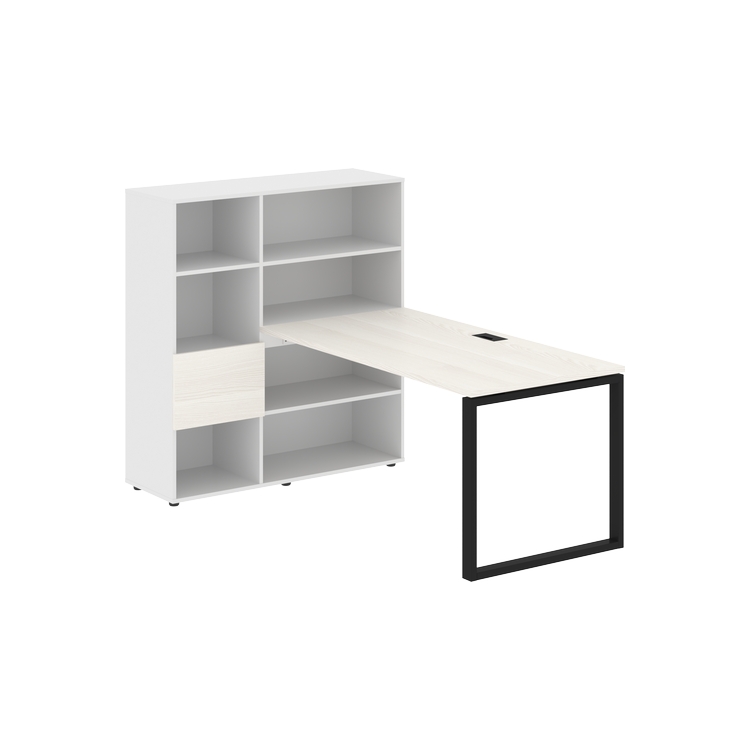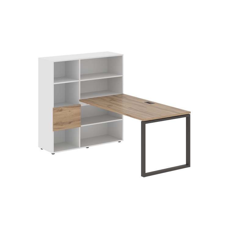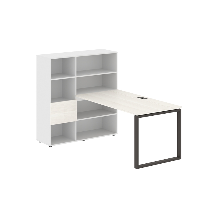 Каркасы стеллажей полностью из ЛДСП т.18 мм с кромками ПВХ т.2 и 0,45 мм, задняя стенка из ЛДСП. Комплектуется малой дверью в цвет столешницы и регулируемыми опорами h= 27 мм.