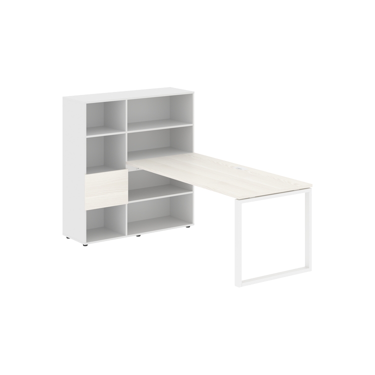 Каркасы стеллажей полностью из ЛДСП т.18 мм с кромками ПВХ т.2 и 0,45 мм, задняя стенка из ЛДСП. Комплектуется малой дверью в цвет столешницы и регулируемыми опорами h= 27 мм.