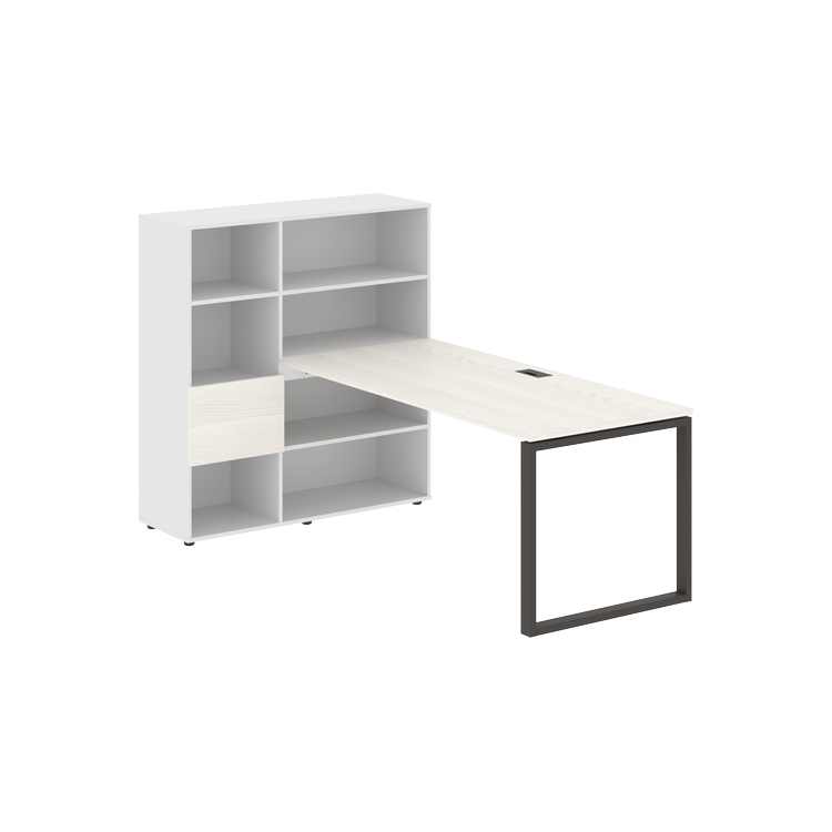Столешница глубиной 800 мм, комплектуется регулируемой опорой О-образной формы из профиля трубы 60х30, комплектом телескопических траверс и двумя кронштейнами для крепления к стеллажу.