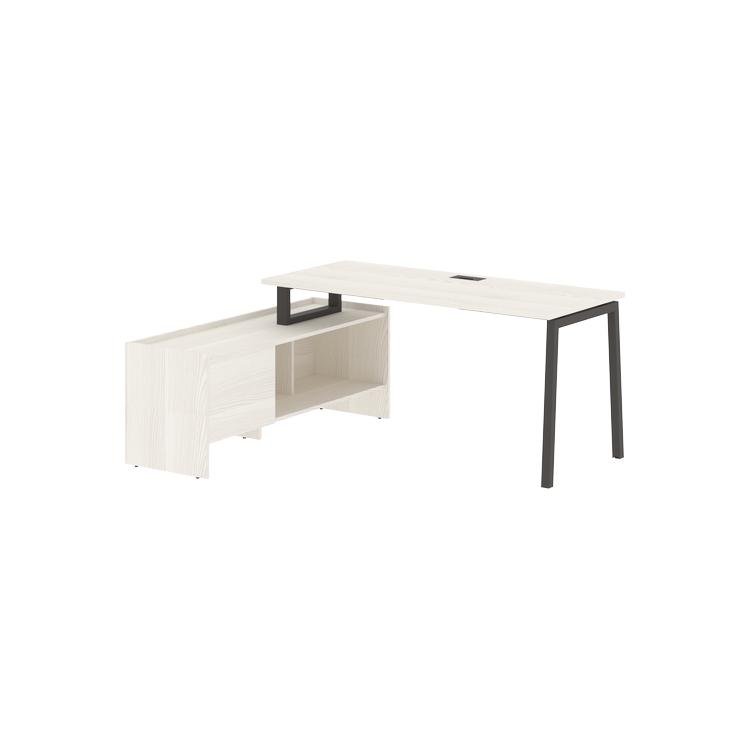 Столешница глубиной 670мм из ЛДСП т.25 мм с кромками ПВХ по периметру т.2 мм. Комплектуется металлическим кабель-каналом габаритом 160х80х25 мм.