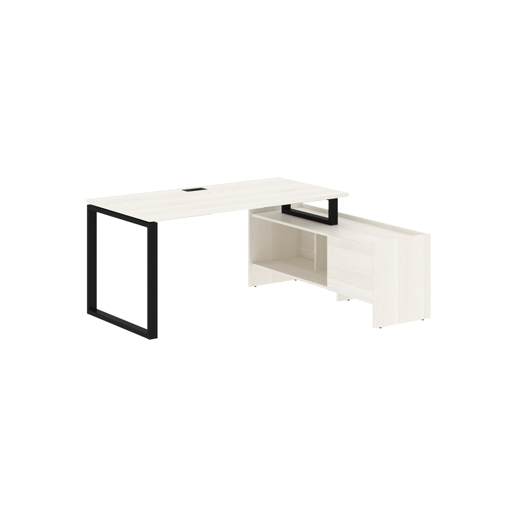 Столешница глубиной 800 мм из ЛДСП т.25 мм с кромками ПВХ по периметру т.2 мм. Комплектуется металлическим кабель-каналом габаритом 160х80х25 мм.