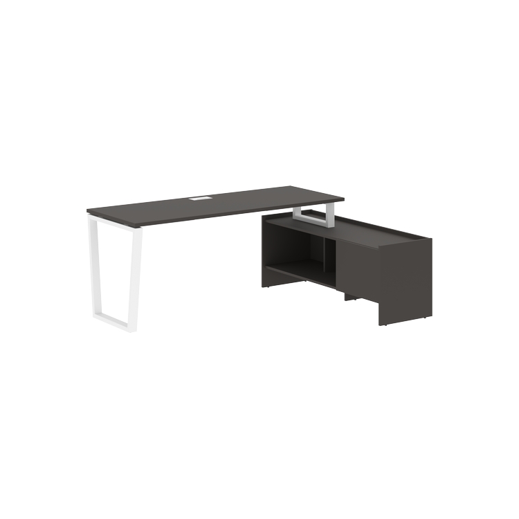 Столешница глубиной 670 мм из ЛДСП т.25 мм с кромками ПВХ по периметру т.2 мм. Комплектуется металлическим кабель-каналом габаритом 160х80х25 мм.