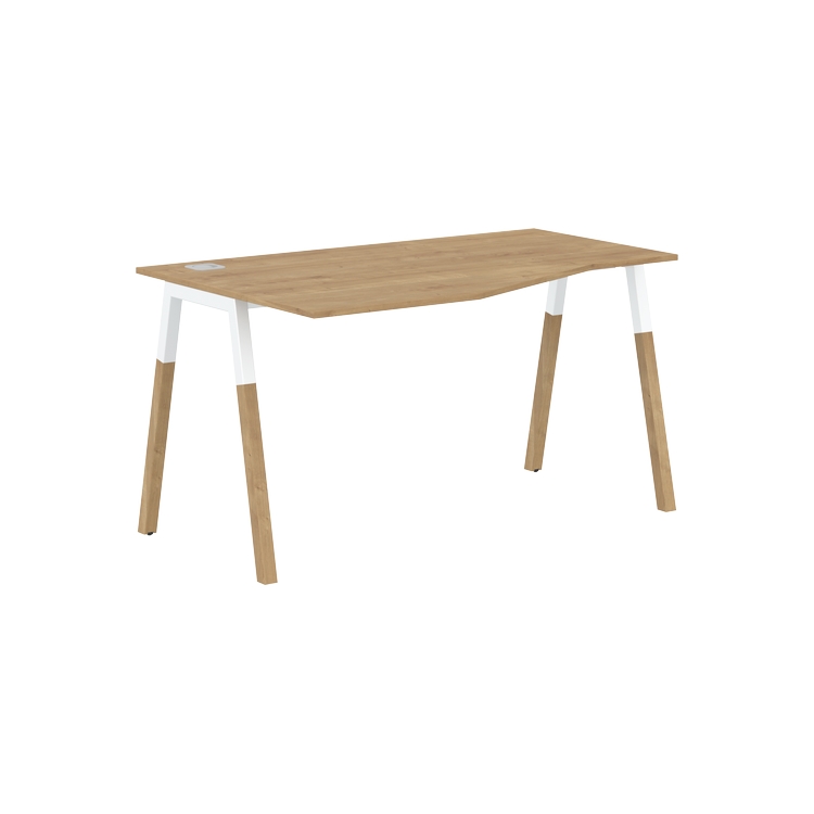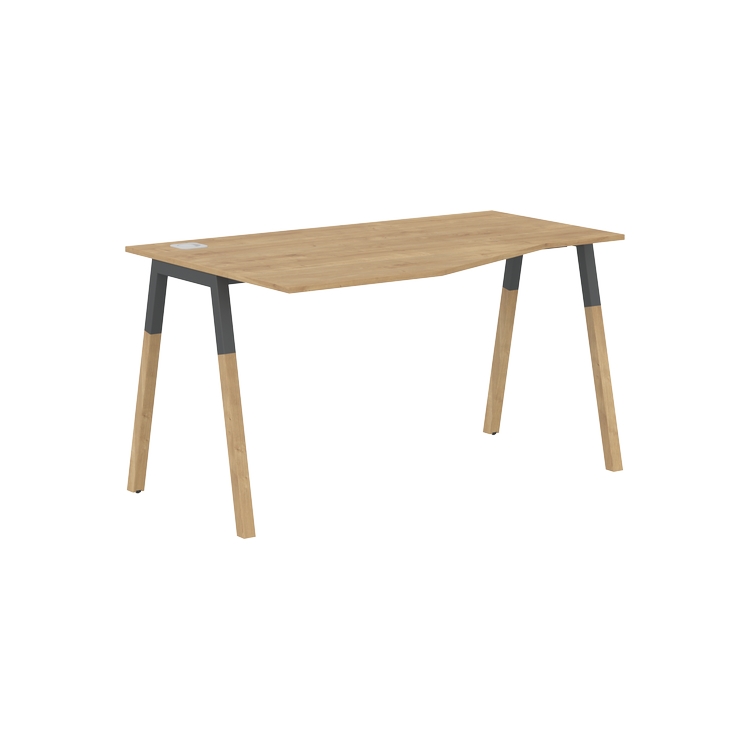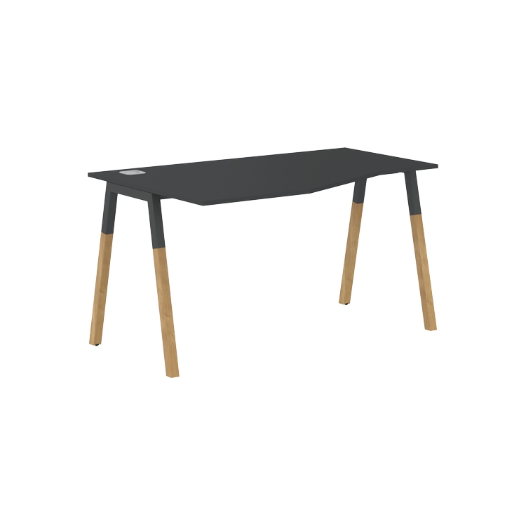 Столешница эргономичная из ЛДСП т.18 мм. c кромкой ABS т.2 мм, комплектуется квадратной заглушкой кабель-канала слева или справа, 2-мя траверсами и комбинированными опорами А-образной формы, верхняя часть из профиля трубы 40х40 мм и нижняя часть из массива бука; отделка – масло-воск.