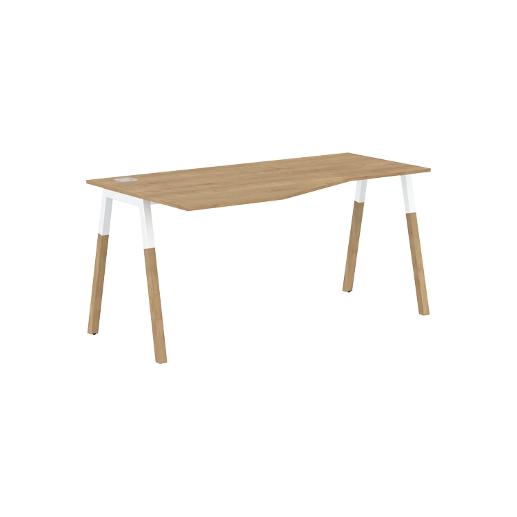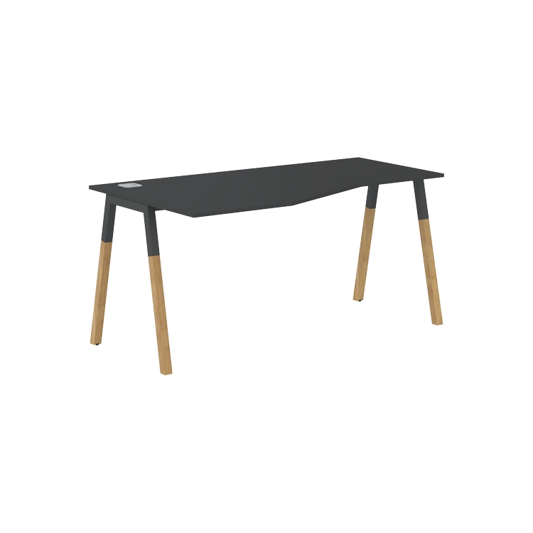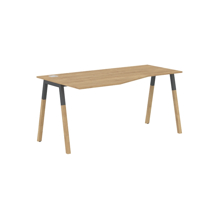 Столешница эргономичная из ЛДСП т.18 мм. c кромкой ABS т.2 мм, комплектуется квадратной заглушкой кабель-канала слева или справа, 2-мя траверсами и комбинированными опорами А-образной формы, верхняя часть из профиля трубы 40х40 мм и нижняя часть из массива бука; отделка – масло-воск.