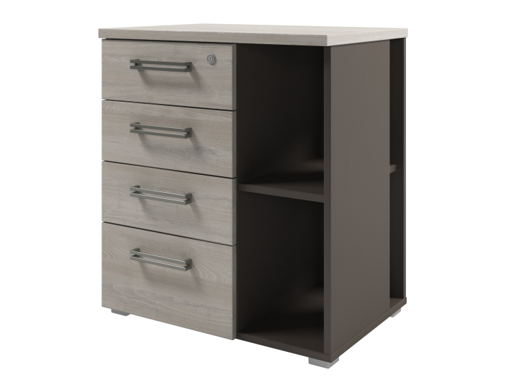 Тумба приставная с 4 ящиками и 2 нишами. Верхний ящик оборудован замком.