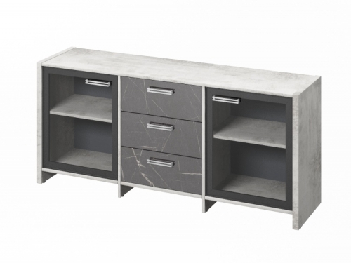 Тумба трехсекционная с 2 дверьми FB-13-02.G Хромикс белый/Камень Пьетра Гриджиа черный [1107]
